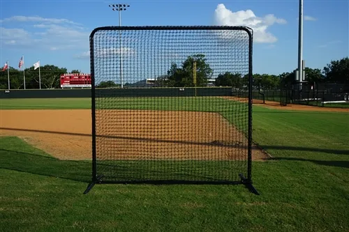 This Varsity 7×7 Field Screen is more durable than your standard screen. Our 1.5″ powder coated steel bolt together frame gives the Field Screen both stability and strength to stand up to the punishment of batting practice and fielding drills. The UV weather treated #60 braided net slips over the frame pillow-case style to offer double protection. The 7′ H x 7′ W frame offers ample space to protect fielders and coaches while working infield and outfield practice drills. Great for baseball or softball use, the Field Screen is versatile and can be used for almost any form of protection on the field and on the sidelines. Although its primary design is to protect fielders during drills, it is also great for use as a catcher’s back stop, and also to hang pitcher’s targets. Lastly, this screen has a gusset welded onto each leg to ensure durability and longevity.